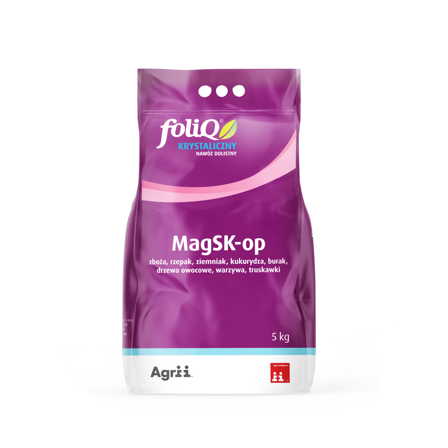 Krystaliczny nawóz makroelementowy będący doskonałym źródłem azotu, potasu, magnezu i siarki. Produkt z uwagi na bardzo wysoką zawartość oraz doskonałe zbilansowanie składników pokarmowych jest skuteczny w dolistnym dokarmianiu większości roślin uprawnych oraz zapobieganiu i eliminowaniu niedoborów makroelementów. Dzięki nowoczesnej formulacji oraz wysokiej jakości komponentów używanych do produkcji nawozu, składniki odżywcze zawarte w foliQ® MagSK-op są łatwo pobierane przez rośliny. Efektywne i szybkie odżywienie wpływa bardzo korzystnie na ogólny poziom zdrowotności upraw oraz ich zrównoważony wzrost, rozwój i plonowanie.